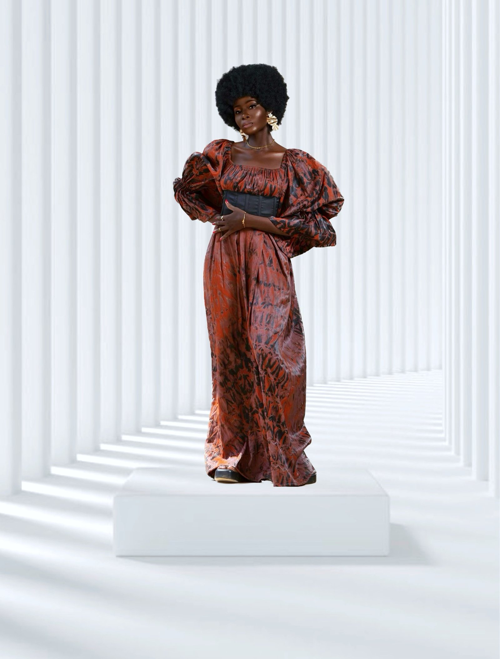 ABIRÉ jumpsuit will make you feel and look confident. It features a corset closure, and puff sleeves which can be wear shot or long as well. It slims your waist and free your legs.