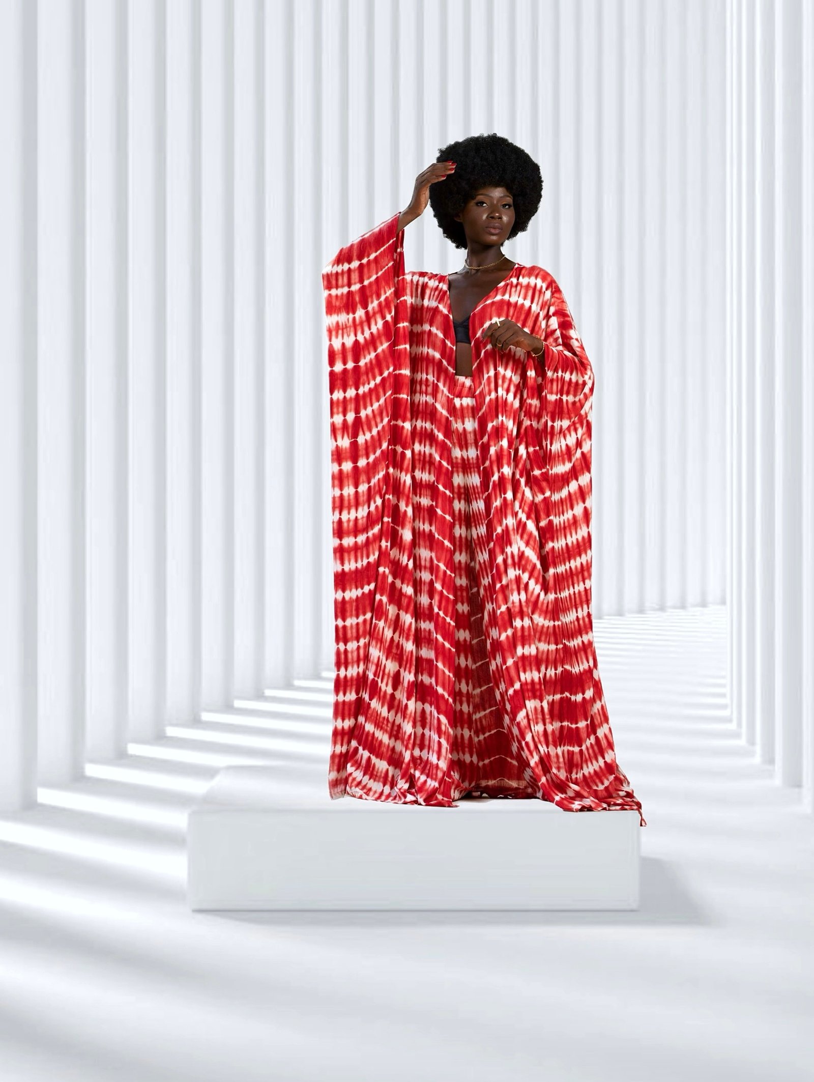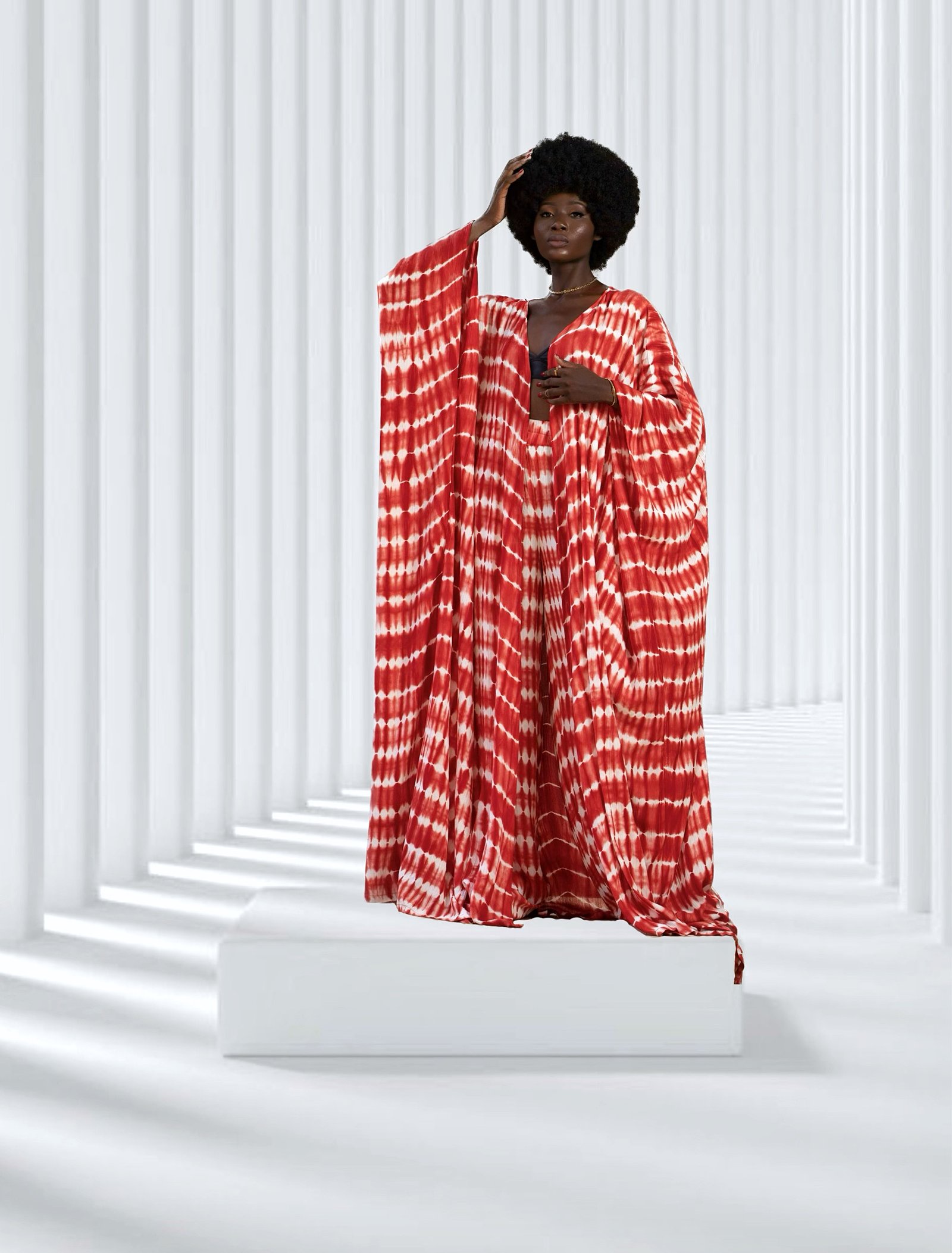 The AKOUA set is a maxi floor length kimono plus a wide leg and high waisted pants. The most comfy summer look.