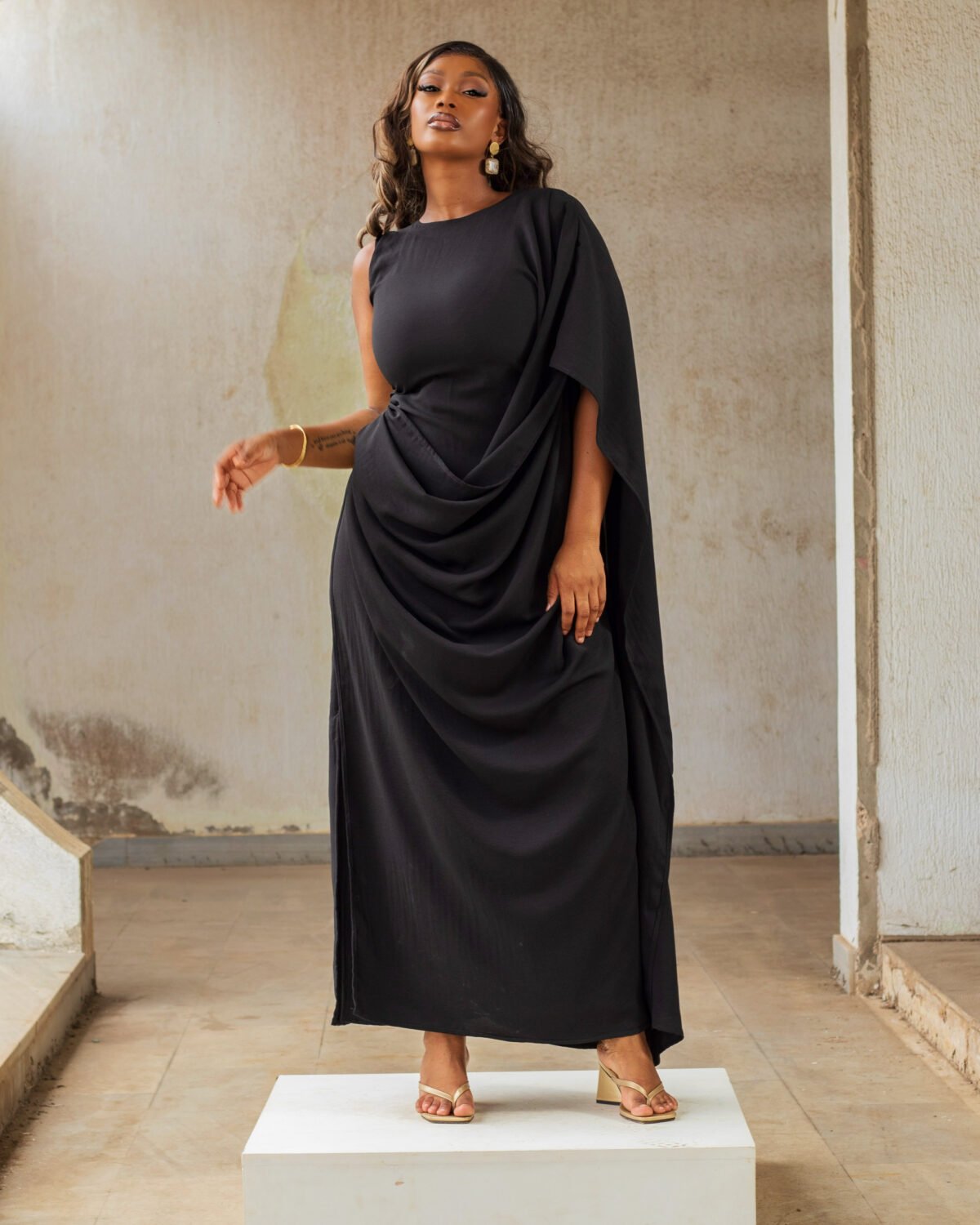 La robe FIASSI est la robe de la saison. Cette robe déclare votre prestance et vous fait sortir du lot. Elle pousse la curiosité des regards par sa structuration.